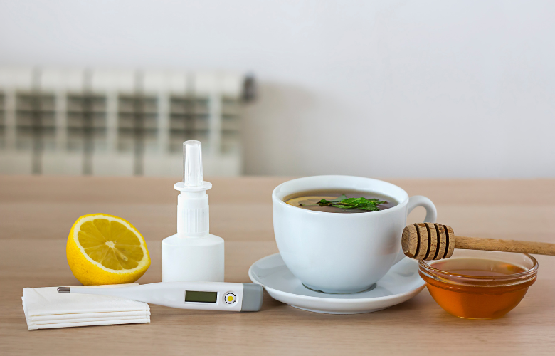Bei Krankheit ist ein warmer Tee ein beliebtes Hausmittel. Neben der Flüssigkeitzufuhr können auch die Inhaltsstoffe eine beruhigende Wirkung auf den Körper haben. So hilft Salbeitee bei Halsschmerzen, Anis-Fenchel-Kümmel-Tee bei Magen-Darm-Krämpfen und Thymian-Tee bei Husten. Bei einem fiebrigen Infekt wird gerne Lindenblütentee empfohlen, um so das Fieber zu senken. Dabei spielt bei Fieber die Sorte gar keine so bedeutende Rolle. Die fiebersenkende Wirkung von Tee kommt in diesem Fall nämlich vor allem durch die Wärme. Dadurch fängt der Körper an, noch mehr zu schwitzen, was wiederum den Körper kühlt und das Fieber sinken lässt.